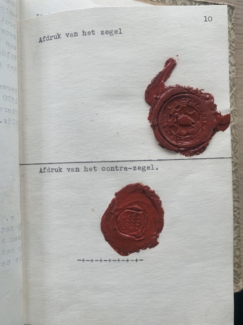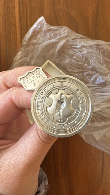 Via Bob Dekker hoorde Cassandra – één dag voor het ophalen in Den Haag – het hele verhaal. Ook dat de Oudheidkundige Commissie toentertijd een replica had laten maken. De schoonvader van Bob, goudsmid Ton Friedrichs, heeft een jaar na de diefstal een gelijkend exemplaar gemaakt. In een mail uit 2007 van wijlen Seiny Klopper staat vermeld: “Dat dit nagemaakt kon worden kwam omdat een van de oprichters van de Oudheidkundige Commissie Jb. Slooten een werkstukje van dit zegel in boekvorm had gemaakt waarin de lakafdrukken van het wapen staan afgedrukt.”